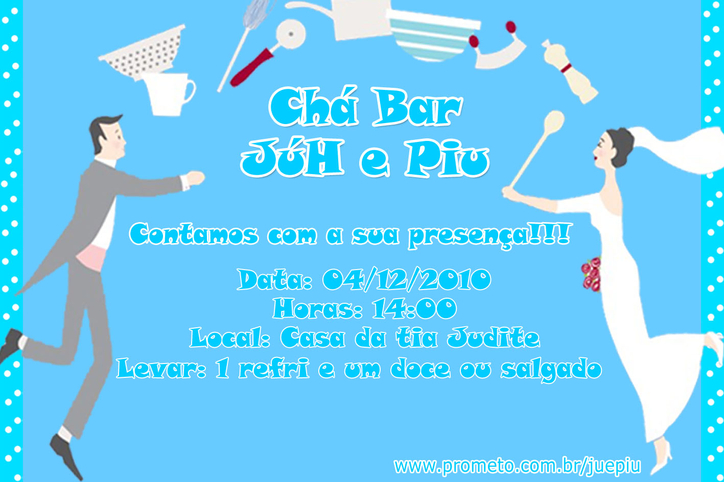 Mais esse final de semana uma tia do Piu ofereceu a casa dela... e disse que vai fazer um chá comunitário... cada um leva um doce ou salgado..... Não gostei mt da idéia....pq eu queria esperar.... principalmente pq nd q ganharmos agora vai ser usado agora... soh quando o ap for entregue..... Por causa disso choreiii... esperneei....fiquei mt chateada... pq eu queria fazer o chá no meu ap e não na casa dos outros..... Mais tive que concordar com o chá pra não fazer desfeita..... A tia do Piu fez isso na maior boa vontade.... mais ehh fogooo neh....ela atehh falou q ia fazer os convites e tal.... mais pelo menos isso eu vou fazer neh.....Então vejam o convite e me digam o que vcs acham ta....
